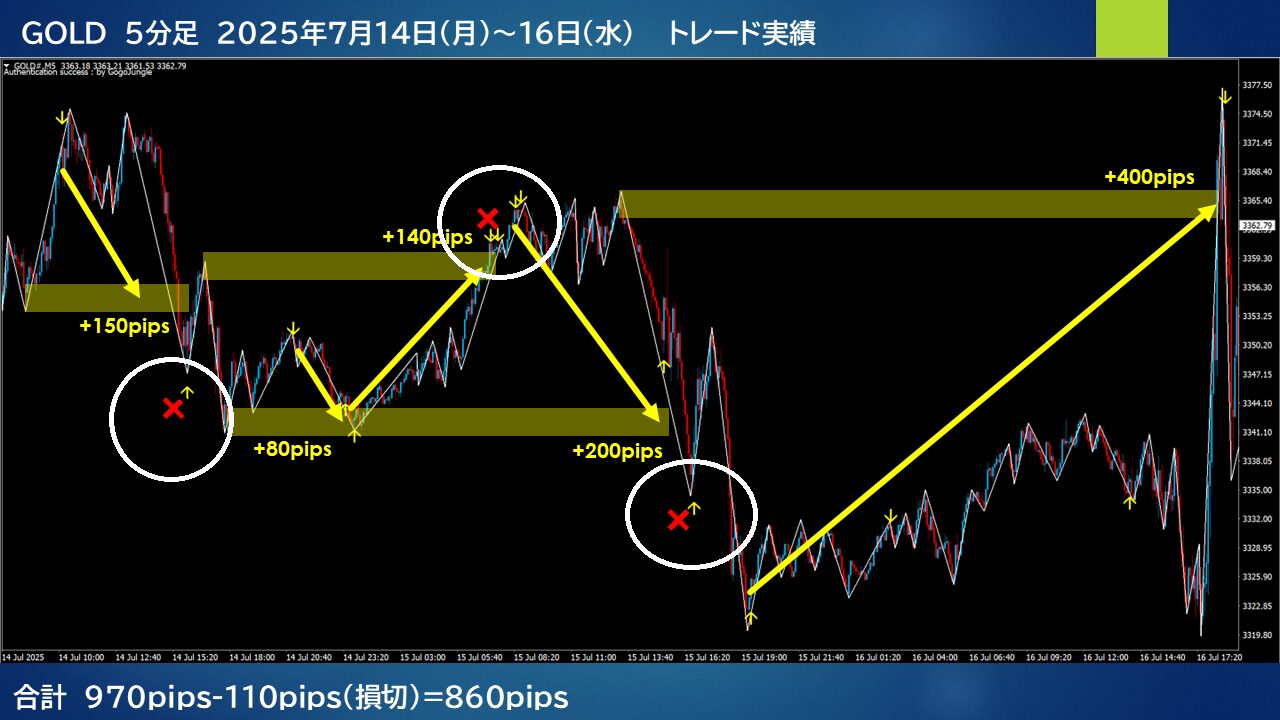 ・GOLDで100pips超のトレード成功