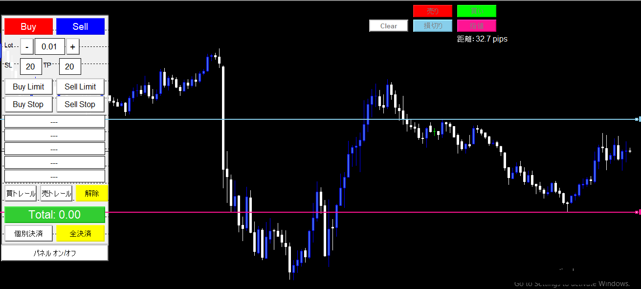 「チャート上に直接、指値・逆指値を描写できる」ターゲットインジケーターです。